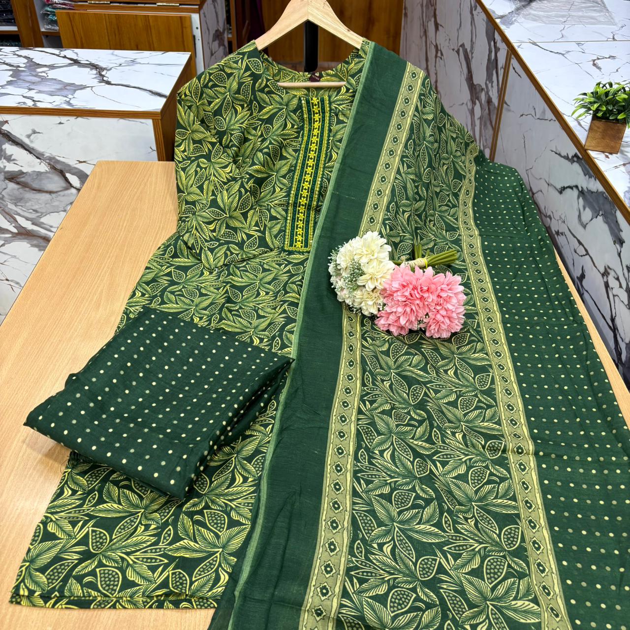 Upgrade your wardrobe with this elegant Slub Cotton Top + Straight Pant + Printed Dupatta set π«