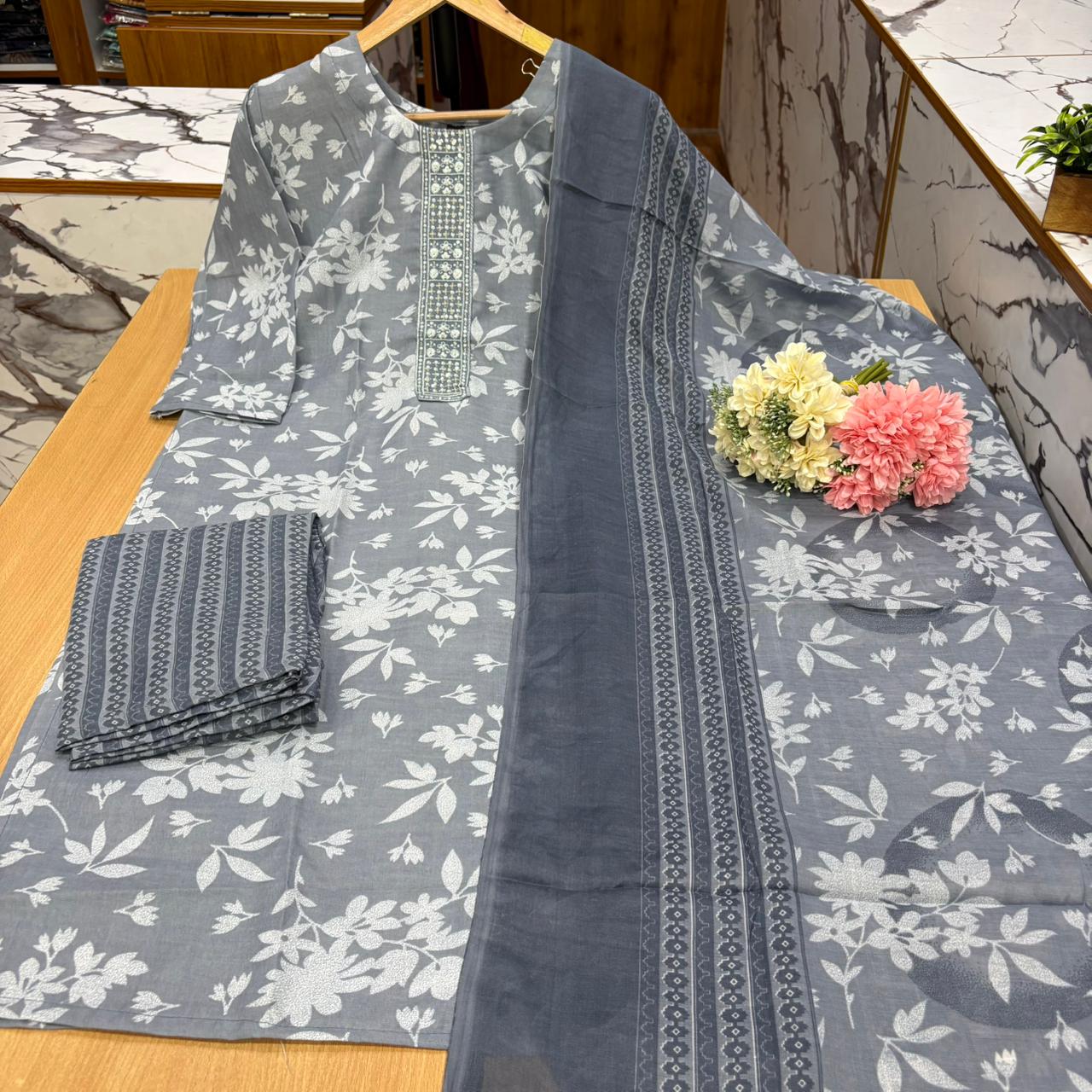 Upgrade your wardrobe with this elegant Slub Cotton Top + Straight Pant + Printed Dupatta set π«