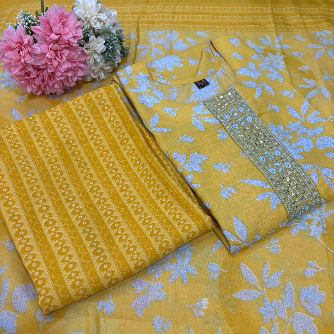 Upgrade your wardrobe with this elegant Slub Cotton Top + Straight Pant + Printed Dupatta set π«
